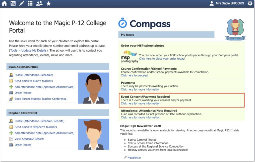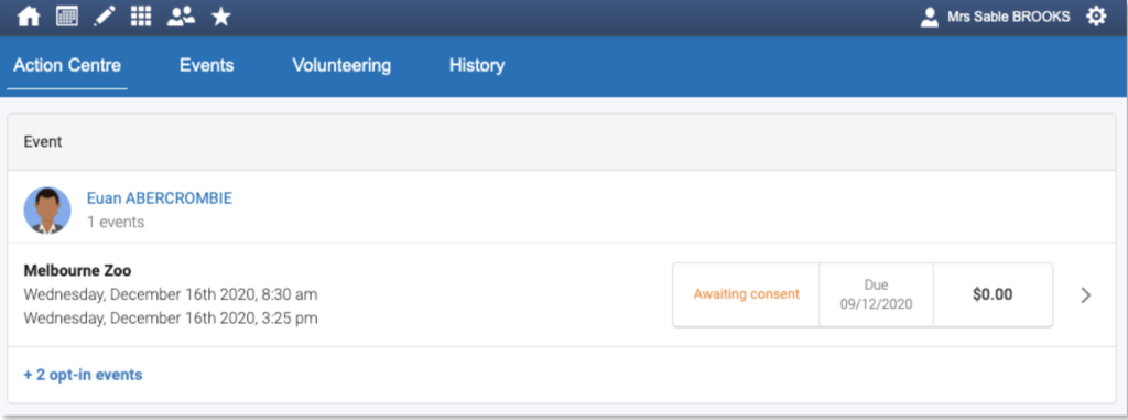 Parents will receive a notification on their home screen when there is an event that requires their approval or payment.